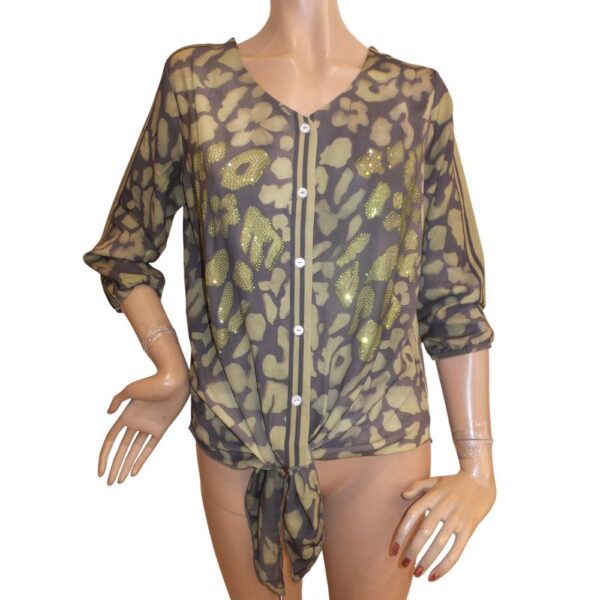 figurvorteilhafte Missy Bluse in oliv mit Strassverzierung, Gr 36, 38 und 42, Passend zur Hose Artnr 10021 und Jacke 10022