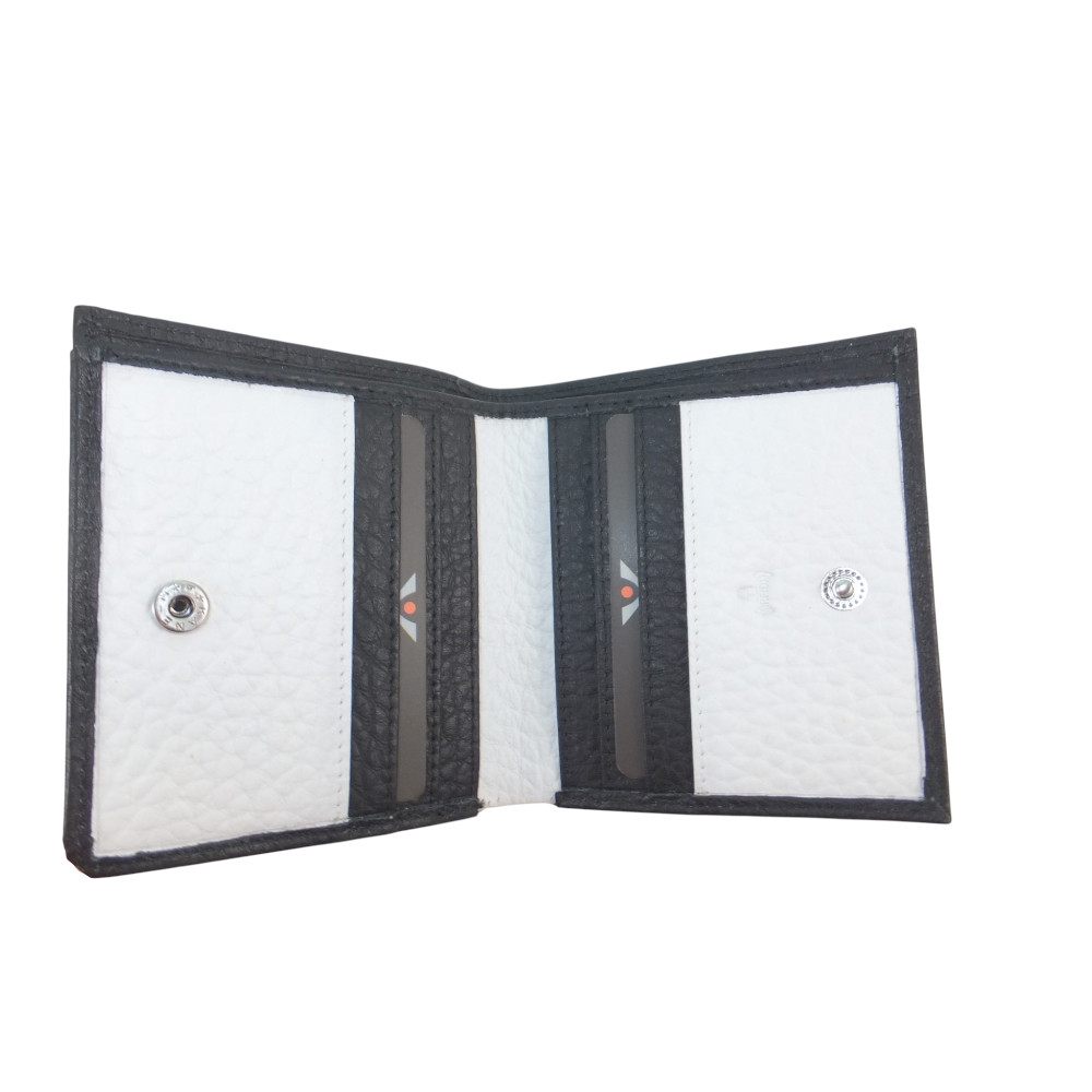 handliche Voi Geldbörse , nur noch in schwarz und im Farbmix schwarz-weiß , 6 Kartenfächer, 2 kleine Steckfächer, 1 Scheinfach, Kleingeldfach mit Einkaufschip, Karten-Ausleseschutz, 9,5 x 10,5 x 2 cm