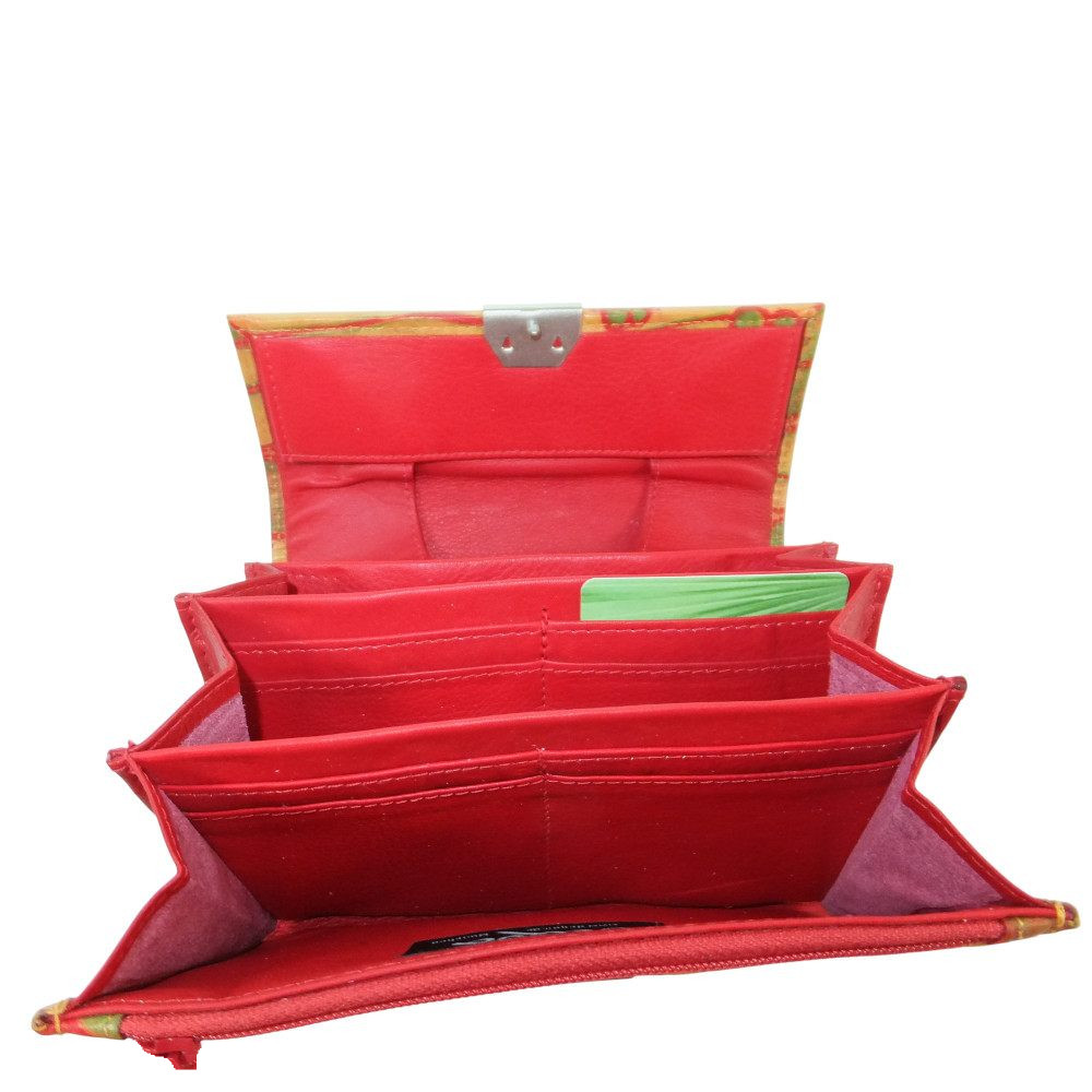 déqua G8 Unikat Geldbörse in orange-rot-grünem Blumenmuster und rotem Innenleder.
