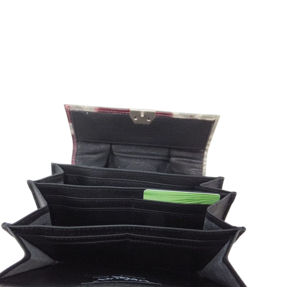 déqua G8 Unikat Geldbörse in grau-dunkelrotem Blumenmuster und schwarzem   Innenleder.
