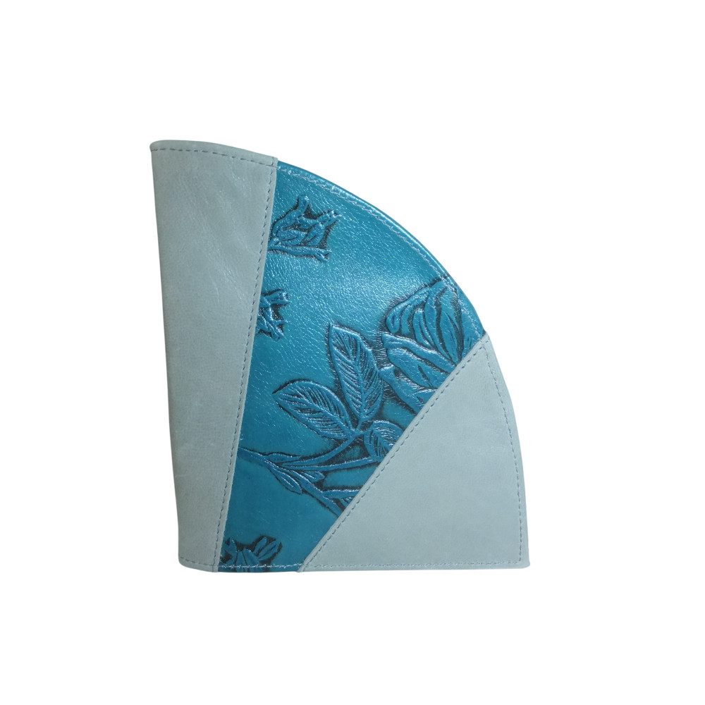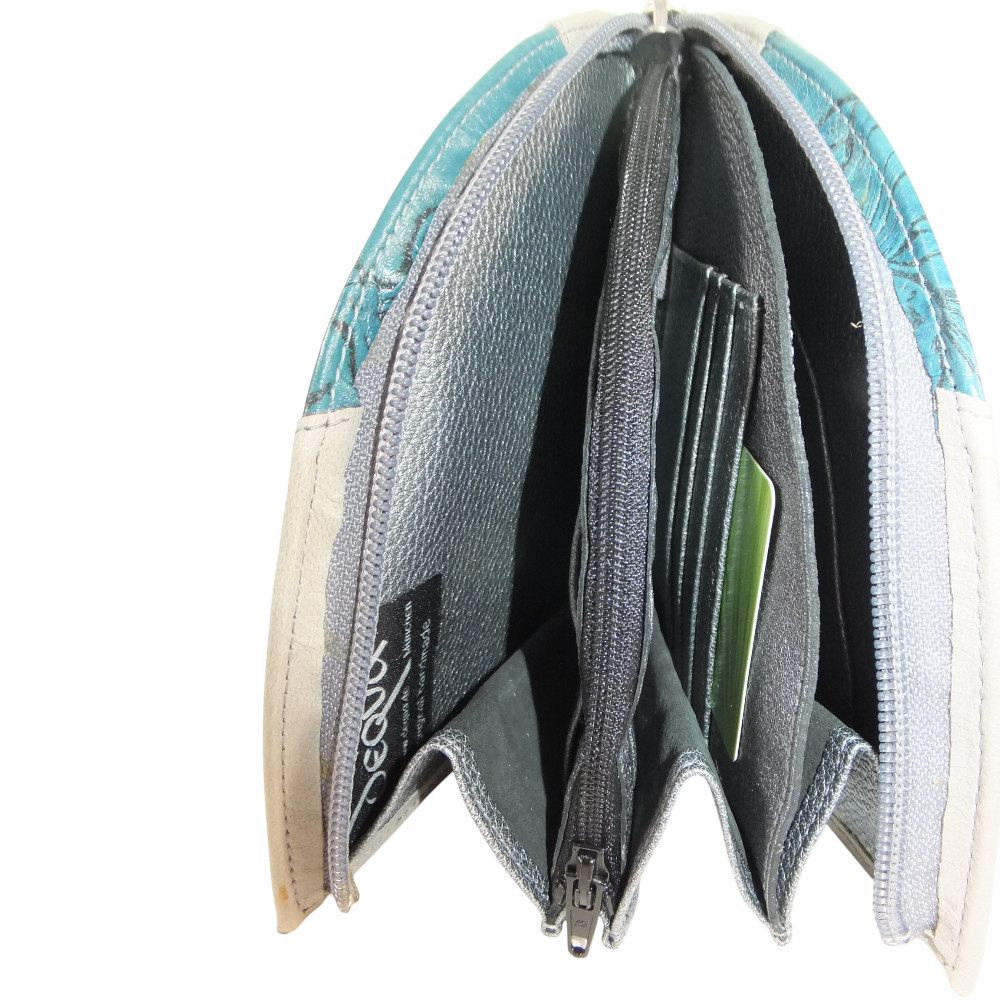 déqua G2/2 Unikat Leder Geldbörse in grau-blauem Rosenmuster mit silbernem Innenleder.