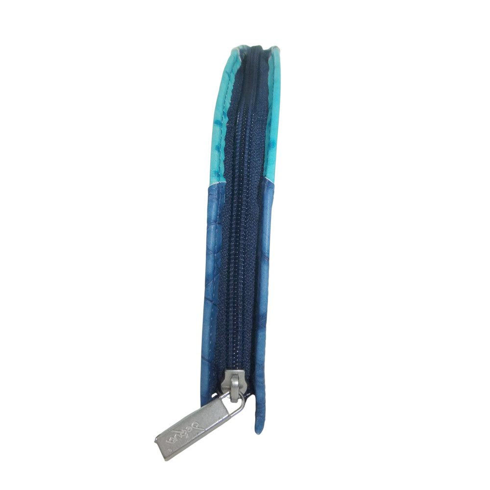 déqua G2/2 Unikat Leder Geldbörse in blau-türkisem Muster mit dunkelblauem Innenleder.