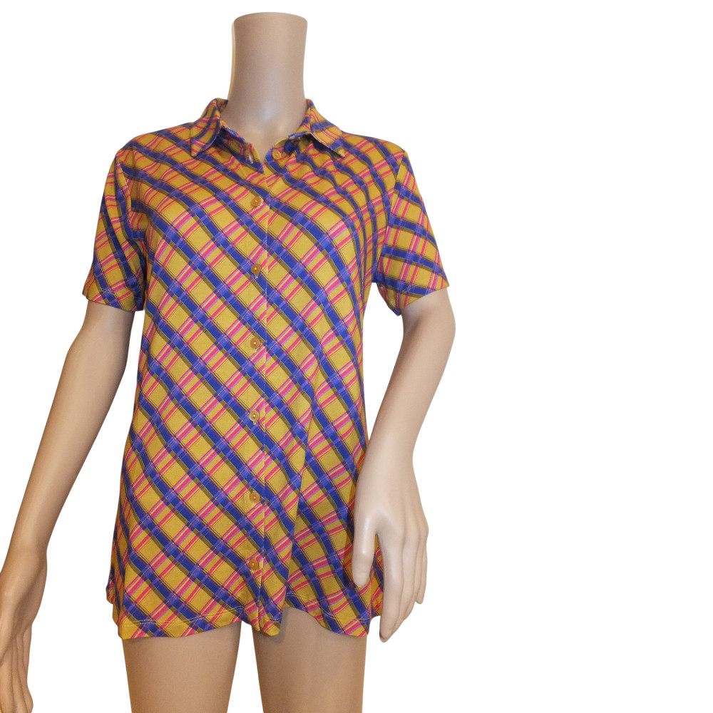 Bluse von Lalamour in ocker-violett-pink, sehr angenehme Stoffqualität, in Gr 38 und 40 , passend zu Rock Artnr 10102 und Shirt 10120