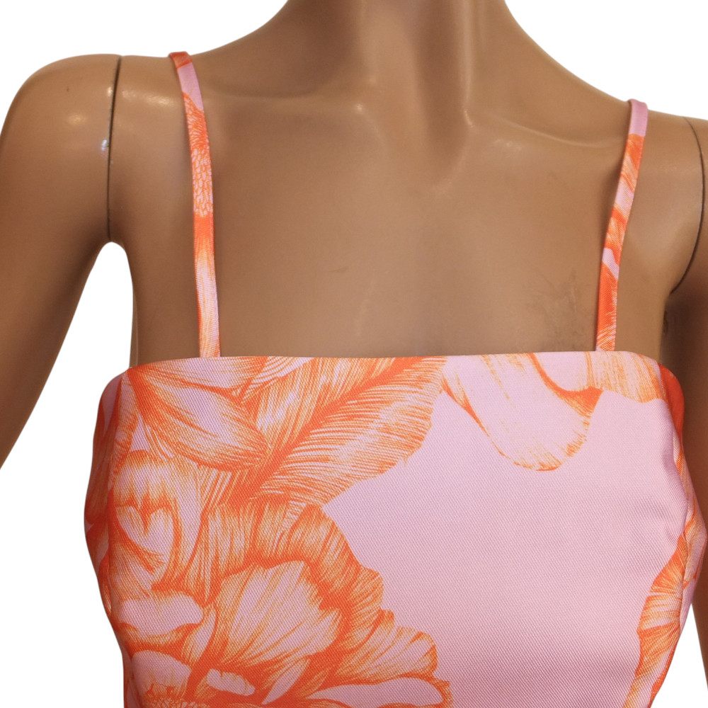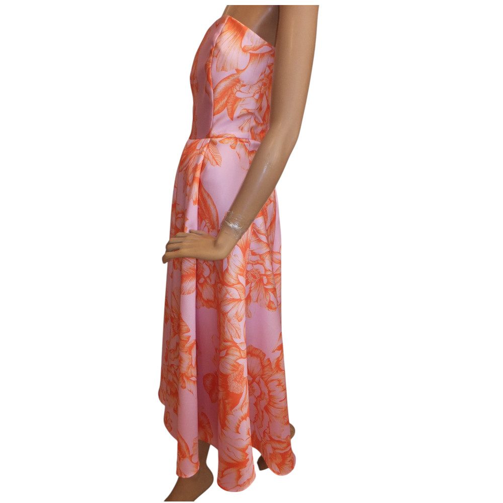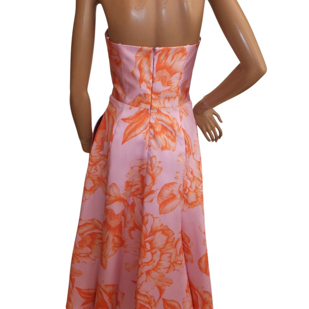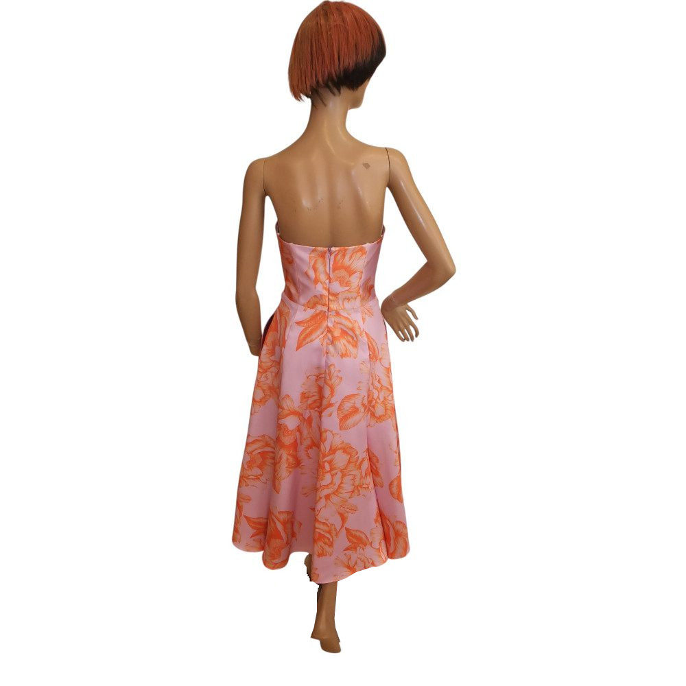 wunderschönes, ausgestelltes Coctailkleid von Swing, Trägerlos jedoch mit passenden Trägern anbei zum annähen, in orange-rosefarbenem Blumenmuster, mit Taschen, in Gr 36, 40 und 44,