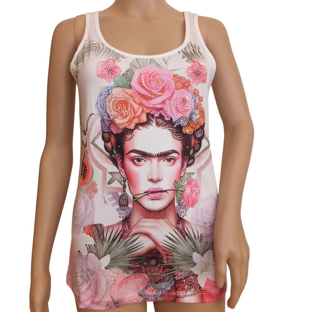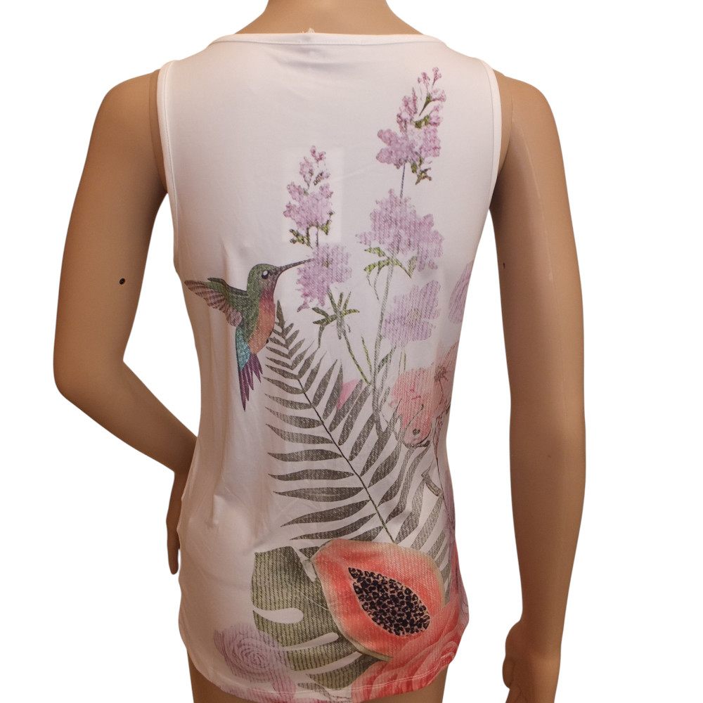 ausgefallenes Missy Top in weiß-bunt mit Strassverzierung, in Gr 36, 38 und 40, passender Blazer Artnr : 10129 und Hose Artnr: 10130
